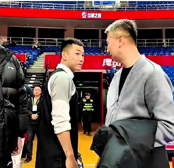比赛开始前,入场观众都注意到,现任中国男篮主教练郭士强来了,他在赛前训练结束时,与爱徒高诗岩在球员通道相遇 ,两人笑着寒暄了几句。