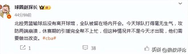 赛后,根据媒体人赵探长的报道,北控男篮输球后没有离开球馆,全队被留在场内开会。今天球队打得毫无生气,攻防两端崩溃,休赛期的引援完全帮不上忙,但这种情况并不是今天才出现,他们需要做出改变。