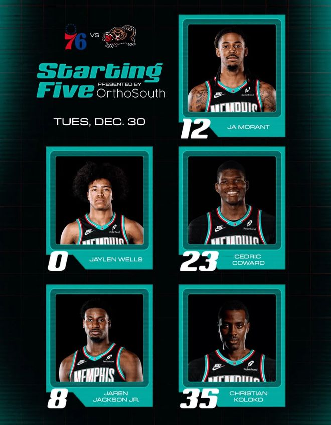 首发阵容方面,76人队这边,三巨头均可出战,排出的最新首发五人组为:乔治、巴洛、马克西、恩比德、VJ-埃奇库姆;灰熊队这边,波普(腿筋拉伤)、克拉克(小腿受伤)、小皮蓬(脚趾受伤)等8人缺战,首发阵容则为:考沃德、莫兰特、韦尔斯、科洛克、小贾伦-杰克逊。