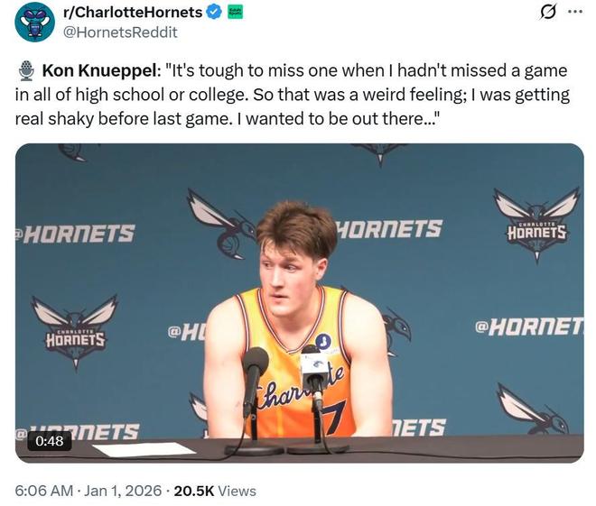 赛后谈到自己因伤缺席一场后复出,克努佩尔坦言:“整个高中和大学我一直全勤,从未缺席过任何一场比赛,所以现在缺席了一场真的很难受,上场前我的手都紧张的发抖,我就是想登场打球。”