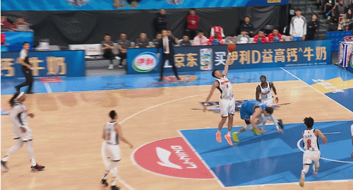 比赛第二节,周琦行进中被萨姆纳推倒,倒地过程中冲撞到徐杰的膝盖,随后担架进场。徐杰在队友的背负下离开比赛场地。
