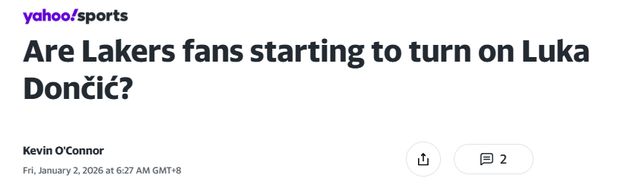 北京时间1月2日,名记凯文-奥康纳表示,湖人超级球星东契奇的"蜜月期"可能即将结束,湖人球迷的不满情绪正在升温。