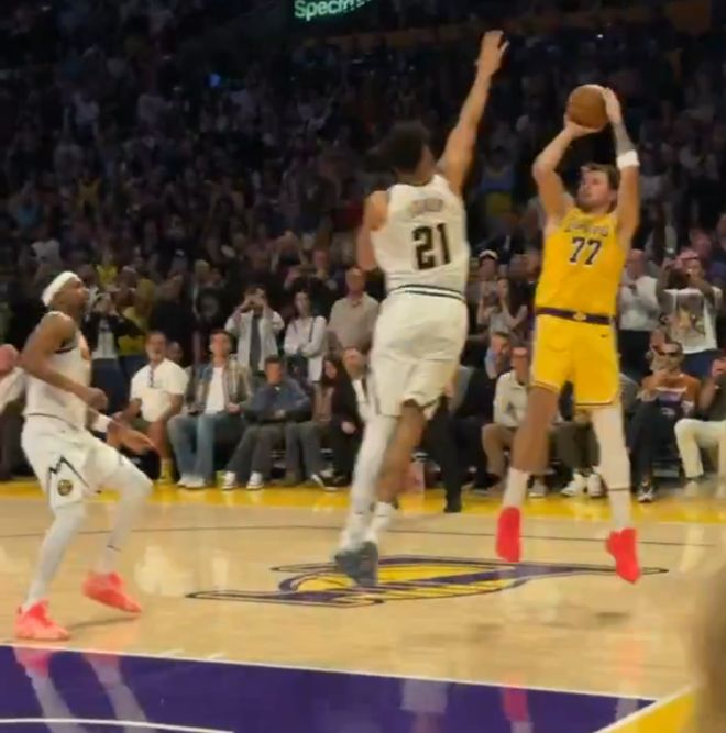 东契奇在末节开场后沦为‘拒投’,雷迪克在暂停后肯定让东契奇放下包袱去进攻,第四节还剩3分28秒湖人落后掘金6分,两队连番打铁后,东契奇2分23秒三分命中,随后又制造穆雷三分打铁三罚全中,他帮助湖人打出6-0扳平分差。紧接着里夫斯两个致命失误,好在里皇将功补过绝平,东契奇末节三分2中1拿到6分2助攻。