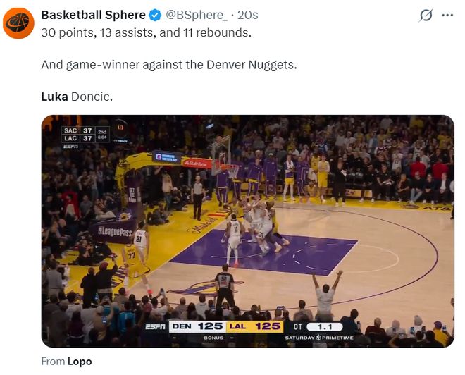 更多的湖人球迷认为东契奇是超级巨星,有一项数据,湖人交易得到东契奇后面对掘金的战绩是4胜1负,他打破了湖人的恐惧丹佛魔咒。