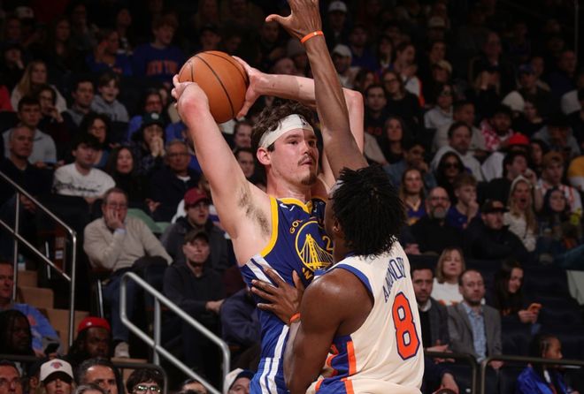 末节,阿尔瓦拉多上篮得分,唐斯中投得分。波斯特连得5分,桑托斯三分命中。克拉克森打成2+1,米罗补扣,克拉克森抛投命中,尼克斯领先7分。波斯特三分命中,桑托斯补篮得分。阿奴诺比、布伦森、桑托斯连续罚球得分,沙梅特三分命中。小佩顿、桑托斯上篮也中,勇士只落后1分。布伦森中投命中,波杰姆斯基上篮得分,沙梅特两罚两中,尼克斯领先3分,波杰姆斯基上篮得分。阿奴诺比两罚两中,波斯特失误,尼克斯险胜勇士。