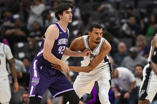 中场休息回来,马刺连续三节得分30+,国王本场首次单节得分30+展开对攻。马刺继续保持旺盛的进攻火力,第三节开局马刺扩大90-52领先38分优势,国王冲击内线逐步反扑追到差25分。马刺第三节末段回敬一波6-0攻势,双方单节维持34-34,三节结束马刺112-81领先国王。前三节比赛,马刺三分38中22,文班亚马18+8+3与尚帕尼17分,引领6人得分上双;国王三分27中11,雷诺26+6引领4人得分上双。
