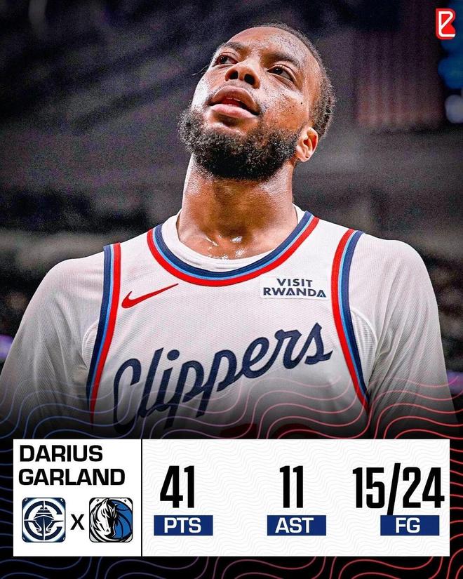 41分追平了加兰的生涯第三高分,同时这也是加兰本赛季第一次、生涯第六次单场40+,他上一次40+还要回到去年1月9日,当时对阵猛龙拿下40分9助攻。