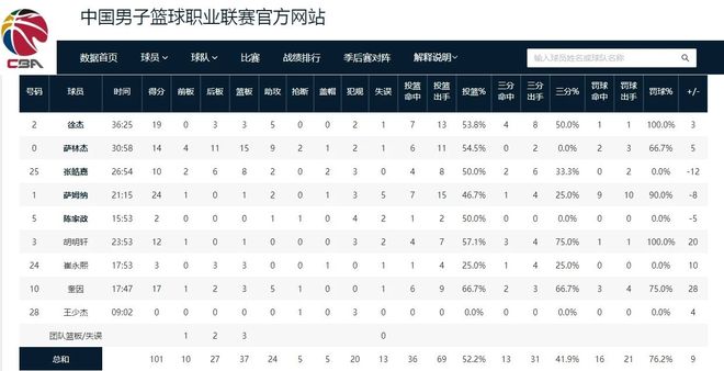 张皓嘉在这场比赛中又获得了27分钟的出场时间,位居全队第三。从表现来看,张皓嘉要比以前好不少,全场得到了10分8个篮板2次助攻的数据。特别是在比赛的最后一节,张皓嘉在进攻和护框方面给了球队很大帮助。不过需要注意的是,张皓嘉这10分都是末节得到的,而且他的正负值也只有全队最低的-12。这说明张皓嘉的数据看起来虽然不错,但他在场时广东男篮其实是输球的。