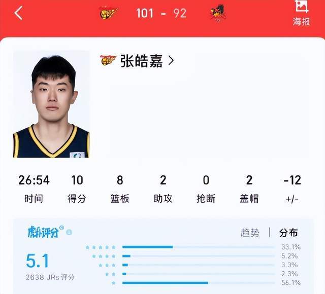 真正令人眼前一亮的是张皓嘉。在末节对手反扑、主力轮休之际,他挺身而出,贡献10分、8篮板、2抢断、2盖帽,攻防一体的表现堪称本场最佳替补。其积极的拼抢、精准的补防与关键时刻的得分,不仅稳定军心,更展现出成长为球队重要轮换的潜力。