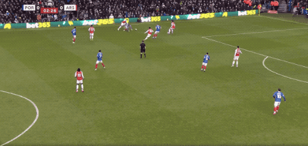 上半场结束,阿森纳2-1暂时领先。下半场开始仅仅6分钟,热苏斯就助攻马丁内利梅开二度。第72分钟,马丁内利上演帽子戏法。