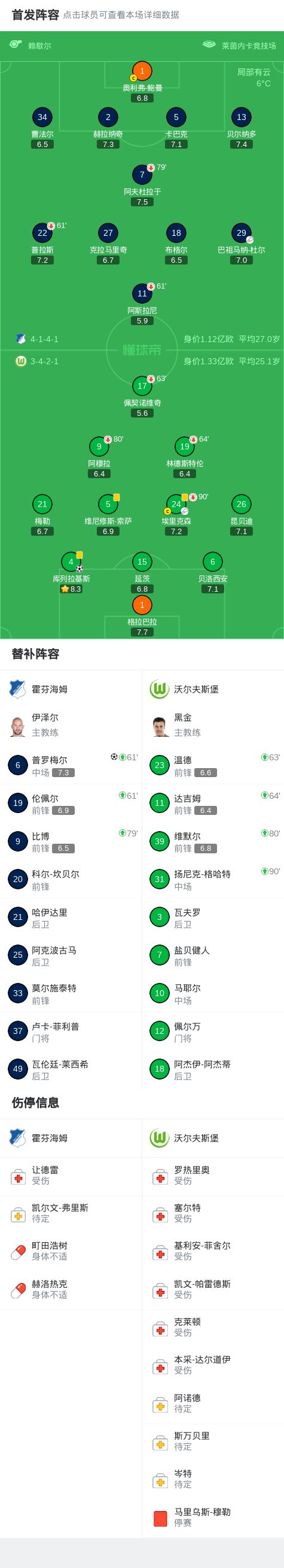 第64分钟,沃尔夫斯堡球员埃里克森助攻库列拉基斯打入一球。