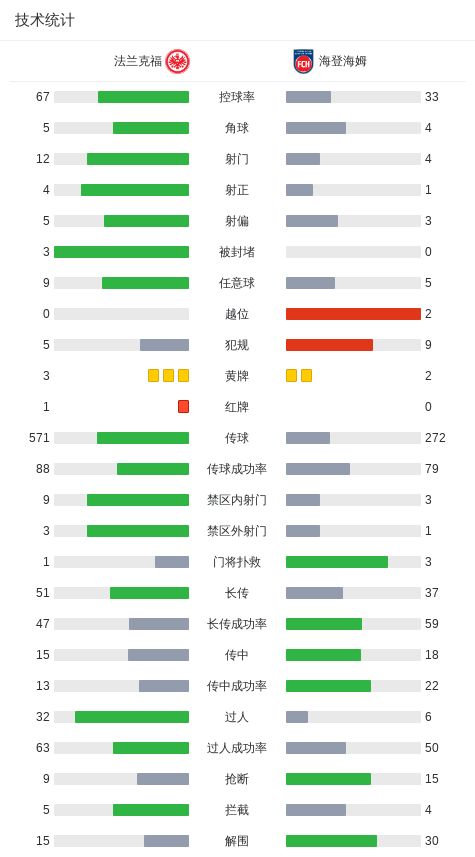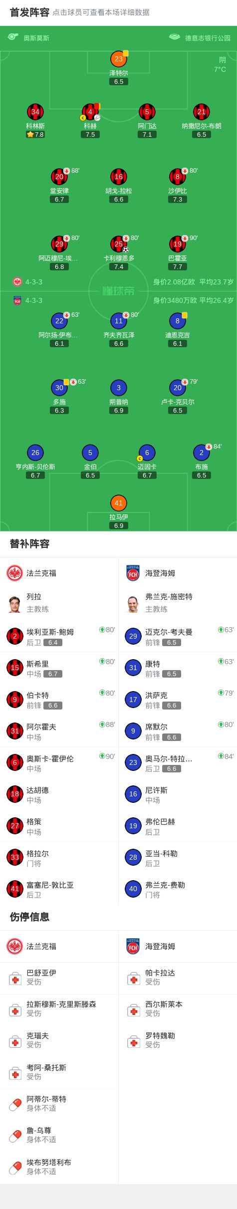 北京时间3月14日德国足球顶级联赛第26轮,法兰克福主场对阵海登海姆。下半场卡利穆恩多打破僵局,科赫防守犯规两黄变一红被罚下场。最终比分法兰克福 1-0 海登海姆。