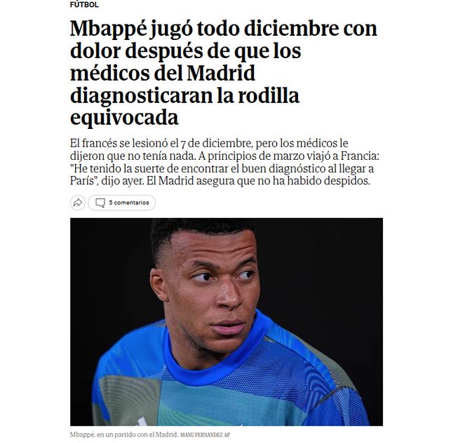 《世界报》通过消息源核实,姆巴佩是左膝受伤,但皇马队医分析核磁共振影像资料,拿的是右膝的图像,得出“姆巴佩膝盖没问题”的结论。