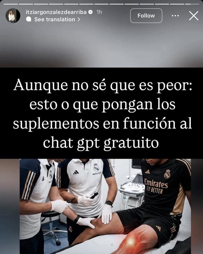对此,前皇马营养师Itziar Gonzalez表示:“虽然我不知道哪件事更糟:是这件事本身,还是他们根据免费版ChatGPT的建议来给球员安排补充剂。