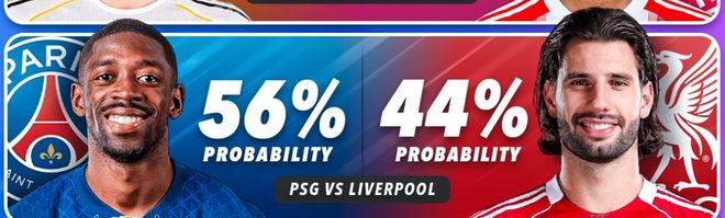 巴黎(56%)vs 利物浦(44%)反倒是给出了两支豪门的势均力敌,相比之下可能很多球迷不太看好斯洛特能给大巴黎带来什么挑战,不过,第二回合对加拉塔萨雷他们打出了本赛季顶级状态,也许,这会是个开始的。反之巴黎要好好自我整合了,本赛季他们遇到了很多困难,本土赛事暂时没有收入麾下,这是很多人没想到的。