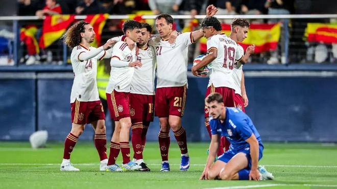 不过说到底,如果奥亚萨瓦尔保持这样的状态,也就不用考虑太复杂的战术了。皇家社会前锋自打欧洲杯决赛打进制胜球,不但代替莫拉塔稳坐锋线一哥交椅,还被激发出与其地位相称的进球率。不管他在俱乐部的状态如何,一旦进入国家队立刻精神百倍。奥亚萨瓦尔在上半场独中两元,锁定胜局。两个进球难度都不小,一个在禁区左侧角度不好,一个在弧顶处距离稍显远,但奥亚萨瓦尔的射门如此轻松写意。打进第2球后,他甚至没有庆祝,表情平静略带骄傲地转过身,仿佛打进这样的精彩进球根本不费力气。德拉富恩特很激动。比利亚之后,西班牙在过去十几年间都没有高效射手,只能将前锋放在支援点位。现在有些复杂的问题就可以简化解决了。