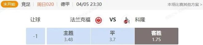 竞足 周日020 德甲 法兰克福VS科隆
