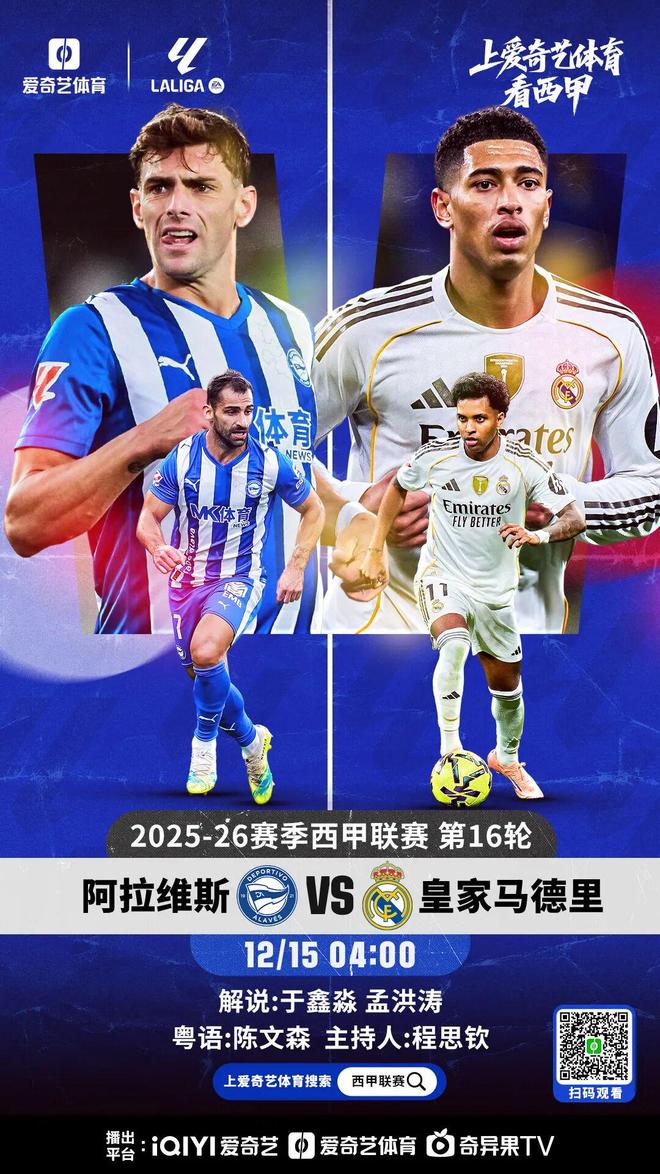 周一凌晨4点,皇马将前往客场对阵阿拉维斯,阿隆索在重压之下率队出征。本场比赛,爱奇艺体育将全程直播。