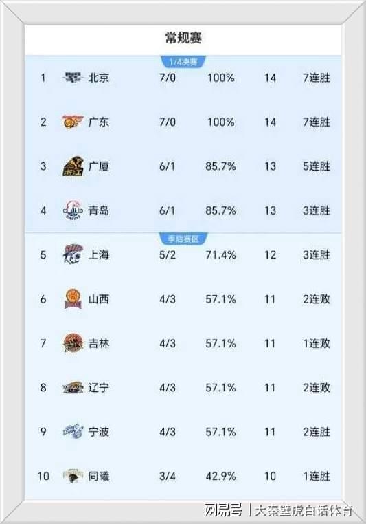 北京男篮和广东男篮继续保持新赛季不败,以7胜0负的战绩重回前二位置;