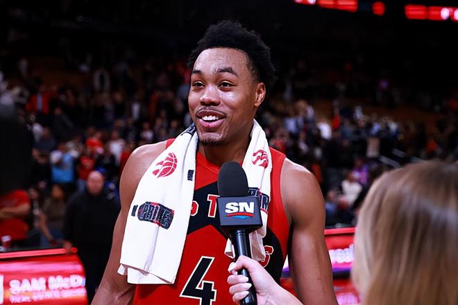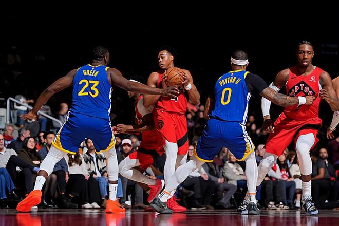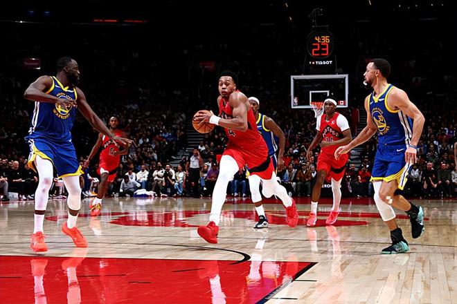 本场比赛中,客串担任先发中锋的猛龙锋线新星斯科蒂-巴恩斯(Scottie Barnes)打出了一场现象级的比赛,简直是打爆了勇士的内线。巴恩斯全场出场42分26秒,投篮17中11,三分线外1中0,罚球1中1,得到了23分25篮板10助攻3抢断1盖帽的三双数据,其中还包括了惊人的9个前场篮板,还有3次失误和4次犯规,正负值也是达到了+24。巴恩斯在进攻端势不可挡,他拿下了大量的前场篮板,展现出来超强的篮下得分能力,勇士内线根本没有办法对他进行基本的限制。巴恩斯还展现出了出色的传球能力和策应能力,同样在这方面起到了关键的作用。巴恩斯在防守端的表现同样是可圈可点的,同样发挥出了自己全方位的防守能力。总体来看,巴恩斯在本场比赛中展现出了极其出色的个人能力,简直是打出了顶级内线球星的水准。