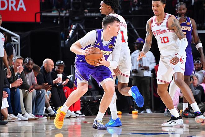 本场比赛中,湖人的替补锋线新星杰克-拉拉维亚(Jake LaRavia)还是保持了自己超高的水准。拉拉维亚全场出场10分16秒,投篮4中2,三分线外1中1,得到了5分3篮板2助攻1抢断1盖帽的数据,还有2次犯规,正负值为+3。拉拉维亚在进攻端虽然出手次数不多,但还是得到了不少的分数,还命中了一记三分,也算是能够起到一定的作用的。拉拉维亚不仅在进攻端表现不错,他在前后场篮板争抢方面的积极性以及他在防守端的活力也是值得肯定的。拉拉维亚在本场比赛中的出场时间其实并不多,但是他在这种情况下还是能够打出这样的表现,也能够说明他在场上的作用是非常突出的。
