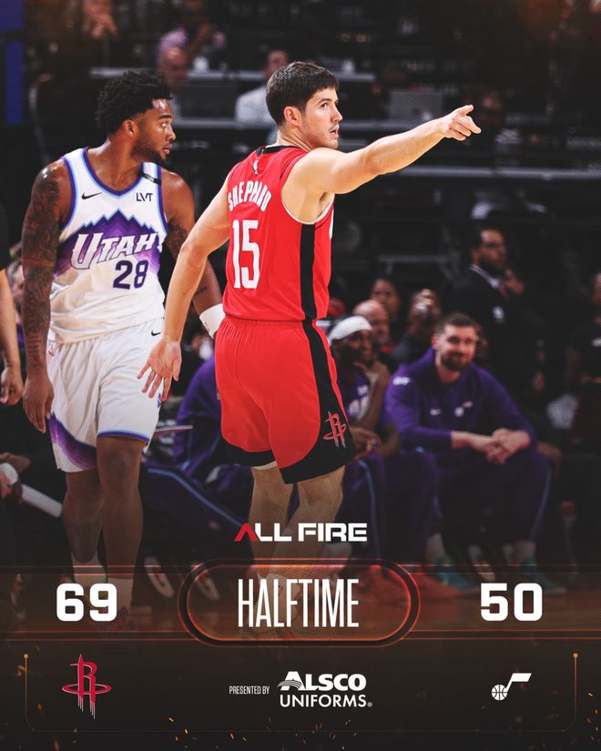 火箭队的杜兰特得到25分、5个篮板和6许助攻,汤普森得到21分和8个篮板,申京得到19分、4个篮板和5次助攻,史密斯得到18分,伊森得到16分和7个篮板,谢泼德得到12分和7次助攻。爵士队的威廉姆斯得到27分、11个篮板和4次助攻,贝利得到22分和6个篮板,森萨博得到20分和5次助攻,菲利波维斯基得到17分和7个篮板,特希维得到15分和10个篮板。