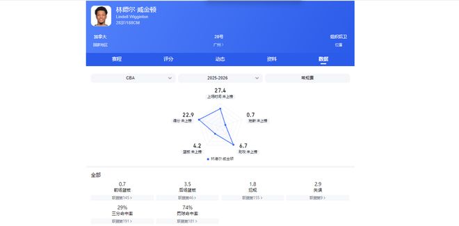作为山东队从NBL低价淘来的第四外援,没想到几场比赛就打成了内线大核。5次出场,他场均18分钟就能贡献16.8分7篮板1.2抢断,效率极高。