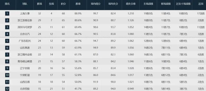 目前深圳队以25胜11负高居联盟第三,仅次于上海队(32-4)和广厦队(29-7)。
