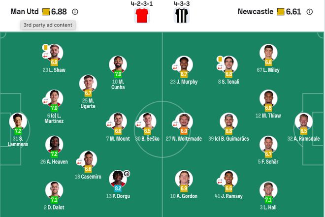 纽卡首发:32-拉姆斯代尔、3-刘易斯·霍尔、12-佳夫、5-沙尔、67-麦利、8-托纳利(76’28-威洛克)、41-雅各布·拉姆塞(68’11-巴恩斯)、39-吉马良斯、10-戈登、23-雅各布·墨菲(68’7-乔林顿)、27-沃尔特马德(68’9-维萨)。