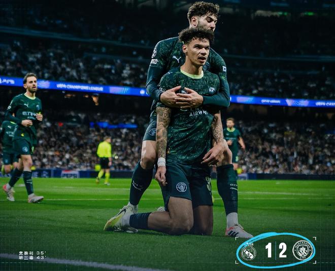 但皇马的领先优势仅维持了7分钟,库尔图瓦的致命失误成为比赛转折点。第35分钟,谢尔基主罚的角球被格瓦迪奥尔头球顶向球门,比利时门将扑救时出现脱手,奥赖利门前补射空门得手。这粒失球并非偶然,皇马本场有6名后防主力因伤缺阵,临时拼凑的防线本就漏洞百出,库尔图瓦的脱手不过是隐患的集中爆发。而曼城这边,奥赖利用91.4%的传球成功率、4次解围与3次抢断的全能表现,完美填补了中场防守空缺,成为蓝月亮逆转的隐形功臣。