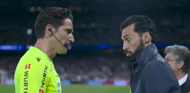 镜头捕捉到了两人的对话,“你听我说一秒钟,之后你再问我。我能说几句吗?他没碰到球。从身后犯规,没碰到球,唯一的意图就是用过度的力量将对方放倒。”这名裁判对教练说道。